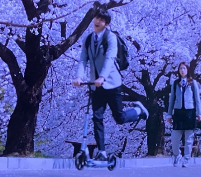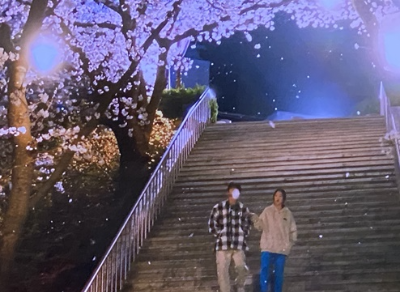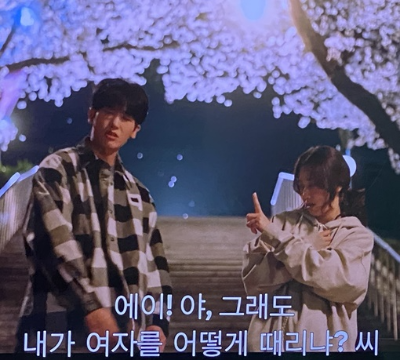 여정우(박형식)와 남하늘(박신혜)은 예쁜 벚꽃 배경(순천향대학교)에서 딱 밤내기를 한다