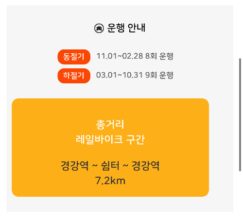 - 6회차: 17:00 (동절기 운행없음)