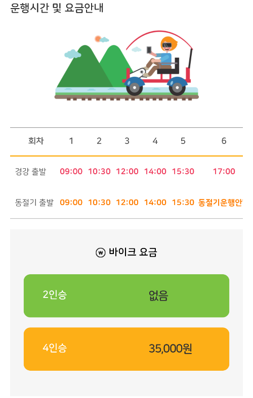 - 4인승 레일바이크: 35,000원