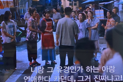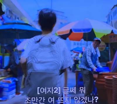 시장에서 김백두의 어머니에게 시장상인들이 이소문을