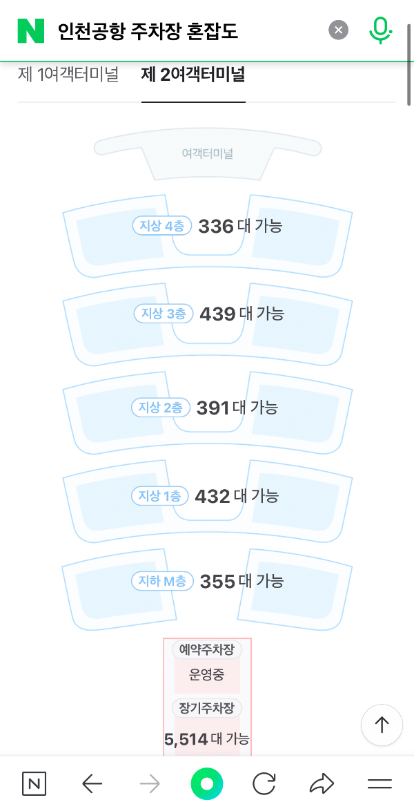 네이버 앱을 통해서 여객 터미널 2곳 그리고 주차장 모두 쉽게 파악할 수 있도록 색깔로 혼잡 정도를 나타내며,
