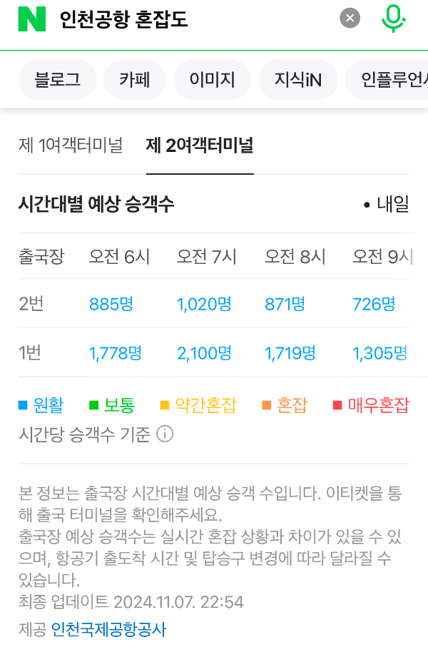 일반적으로 네이버에서는 여객 터미널의 혼잡도를 시간대별로 표시하기 때문에 방문객들이 각 터미널의 혼잡 정도를 미리 파악할 수 있도록 도와줍니다.